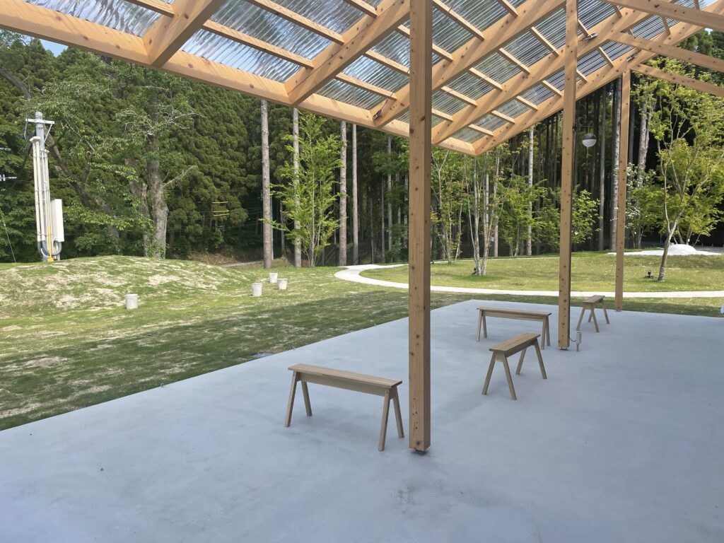 準備をしているキッチンスタッフと挨拶を交わし、なんとなく店内を見まわしながら、連続する大きなアクリルの木枠のサッシのうち、一番奥の奥のものをスライドさせ外に出る。