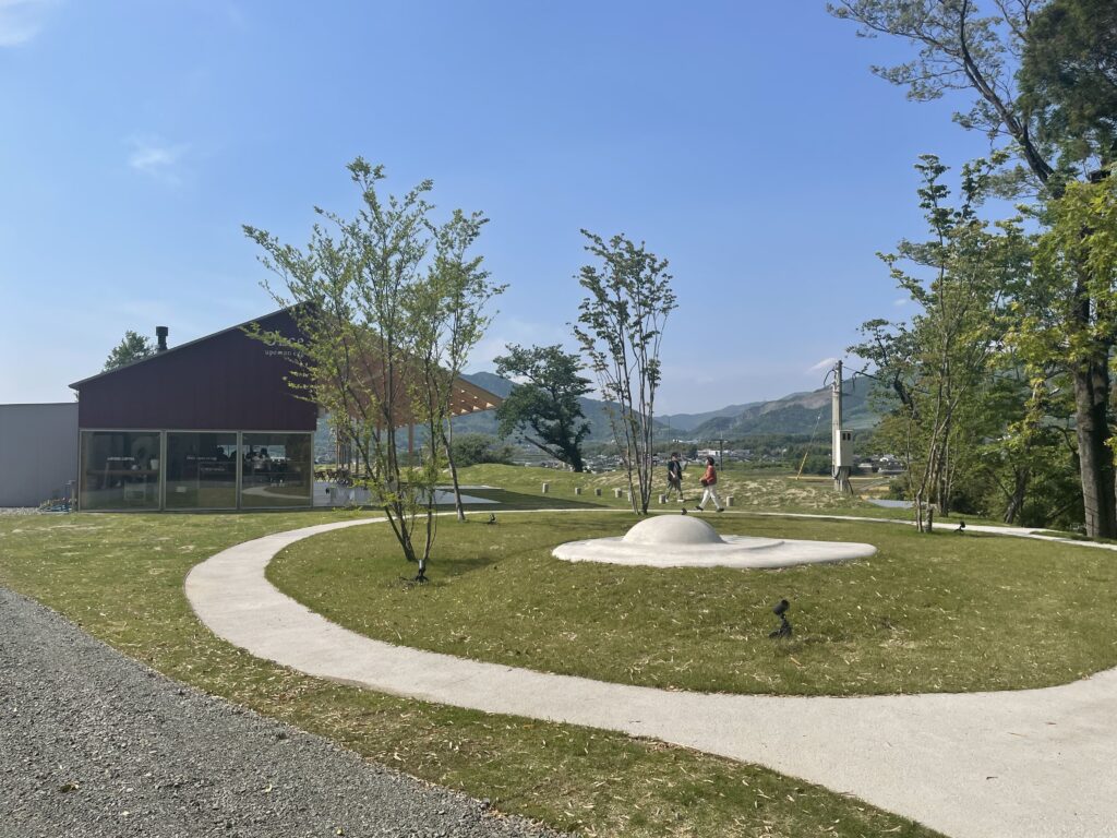 テラスのソファに腰をかけ、いつもは子供や犬連れのお客さんが歩き回る(走り回る)店の庭を眺めると改めて芝生の緑色の鮮やかさに驚かされる。